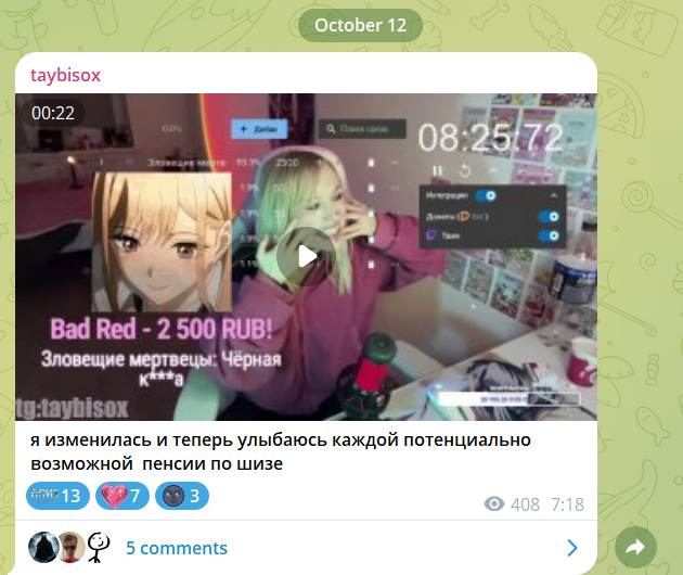 >>25371953 Я не знаю, только сопоставил данные. Но странно, что нейтральный донат, который стример по сути прозевал, она так бойко отрицала в чате. И что кто-то, точно не она, продолжает отстаивать эту позицию на дваче