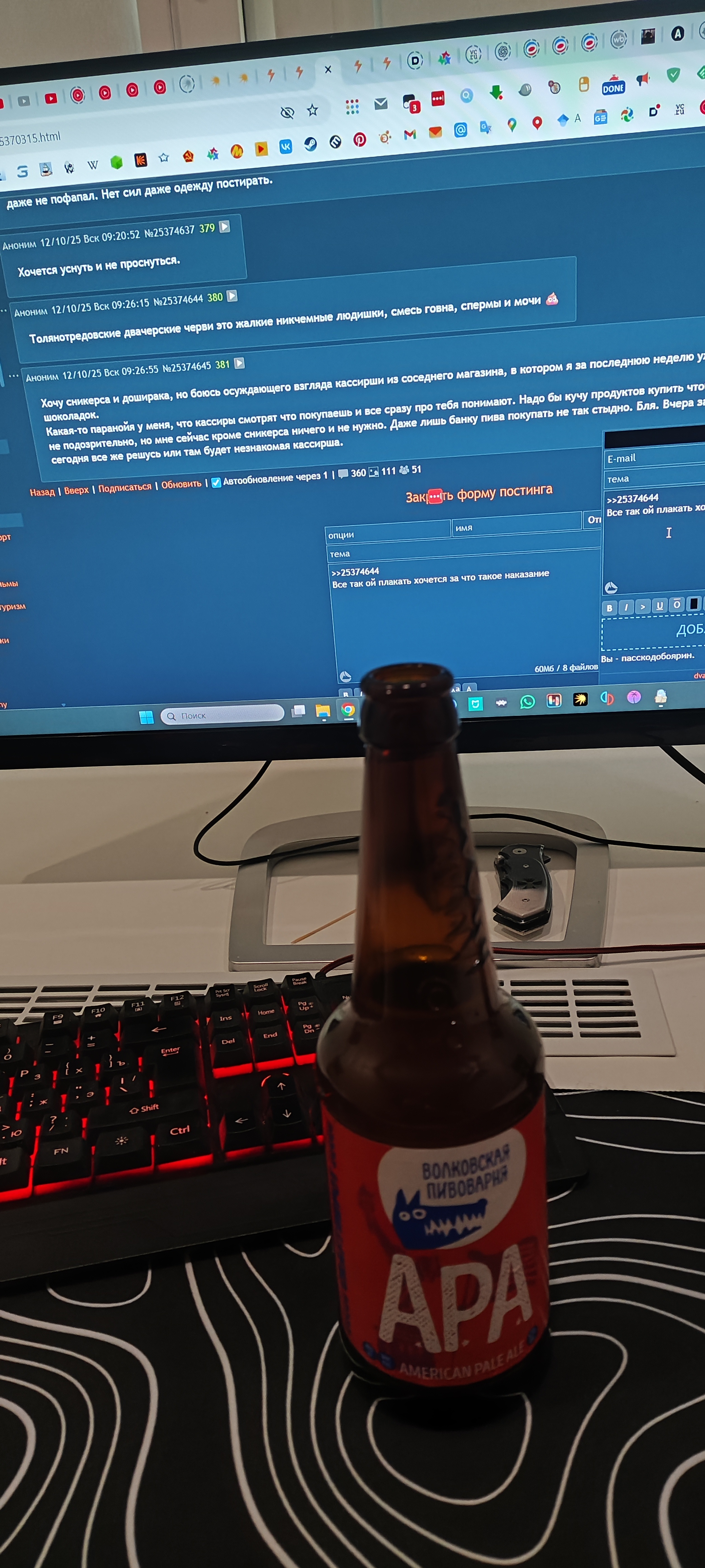 Копрожабыч не читает ваши высеры, только ответы к своим постам. Он заходит в тред пару раз в день на несколько минут, чтобы немного порычать на колясок. Далее он заливается фруктовым пивом и рубится в игрухи.