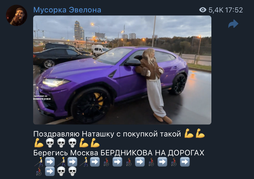 Так Наташка уже 4 машины за счёт Вадоса получила считай ,1 это мерс который был для неё когда они в Киеве жили ,2 это Мазерати в Турции ,3 это Порш и 4 это Ламба (за стрим с Вадей)