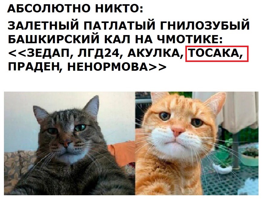 >>25379444 >Я, если что, сам(задолго до этого петуха) считаю маргинала непереобувшимся до сих пор, и который рил ради зрил, которые у него есть, срет им в уши и бьет о том какой он украинец. Иногда перебарщиваю, чтоб его приняли особо одаренные. Я так думал до стадии распада. После стадии распада Толик перешёл Рубикон и уже сдать назад не сможет, он расчеловечивает Россию и наговорил много дерьма которое ему уже не простит никто, буквально сжёг мосты. Кроме того он переобулся по позиции поддержки США - когда Трампыня начал двигаться в сторону договорнячка он его хуесосил, а потом и вовсе признал что двигает интересы Демпартии США назвав респов идиотами, т.е. никакие интересы США ему уже не важны, а важная личная вендетта над так называемой руснёй.