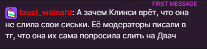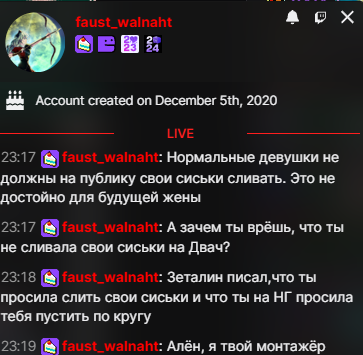 >>25379345 Самая всратая стримерка в ру твиче, просто блевотина из чата мелхарукуса которая взоетела на циве со своим голосом, но когда увидели как она выглядит - все нажали анфолоу