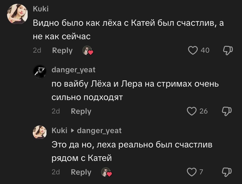 >>25388014 так леха еще на первом стриме из казахстана сказал это. Мол она будет жить в соседнем доме. Они просто не хотят отношения бытовухой убивать.