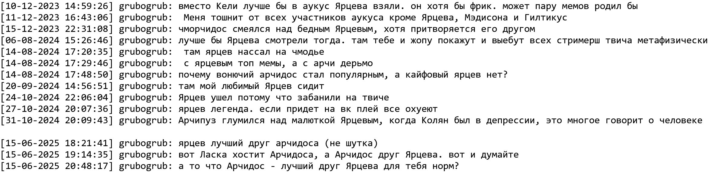 Подсосы Жопича во всем завидуют точику. Их форсят только как подсосов в калсос треде и то редко, а у Арчи свой активный тред самостоятельной единицы и довольно лояльный за исключением залётной гнили