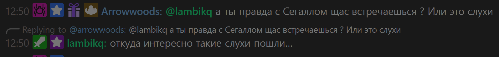 Ламбичка подруга Сегала, он бы как минимум не стал такое говорить про неё на стриме. Их познакомил Гудбойклек лично, нахуя ей писать ему в лс твича, когда у неё есть его лс в тг? Вообщем, слишком много не сходится, что бы форсить эту хуйню. Сегал переебал много своих подписчиц.