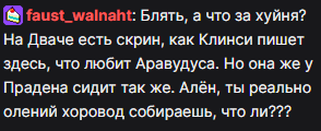 Да прадену на клинси то пох уже стало я думаю, сколько возможностей было встретиться, даже недавняя поездка в Москву. Вот клизми и начала по стримам Женька и хачепуза ходить, вниманиеблядствовать, она их знать не знала. У Дэнчика давно есть любимица, и в ивент который будет через полтары недели, её в свою команду позвал.