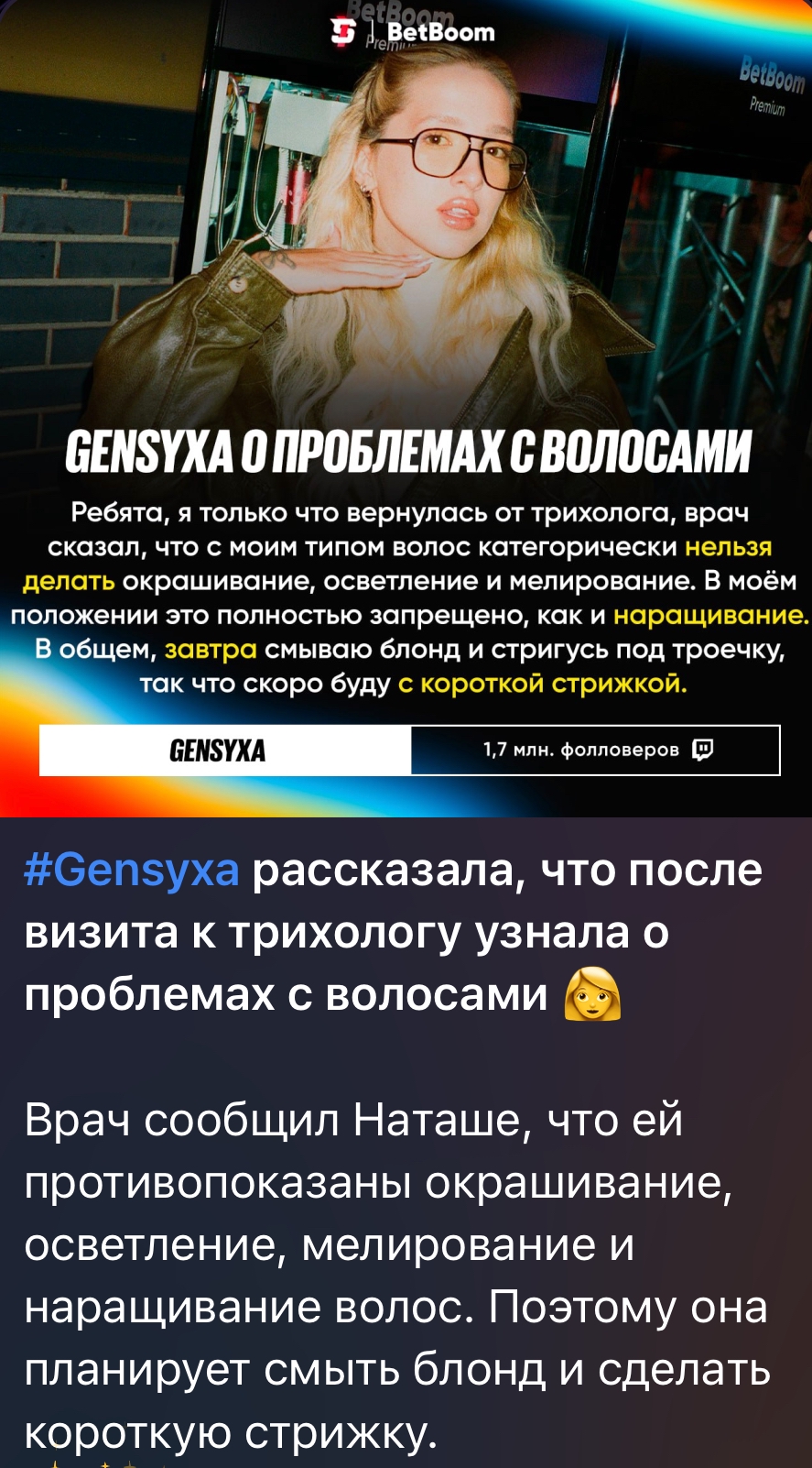 Бля, я так и не понял, ей реально придётся снять эти длинные нарощенные волосы и подстричься покороче, чтобы с волосами не стало хуже?