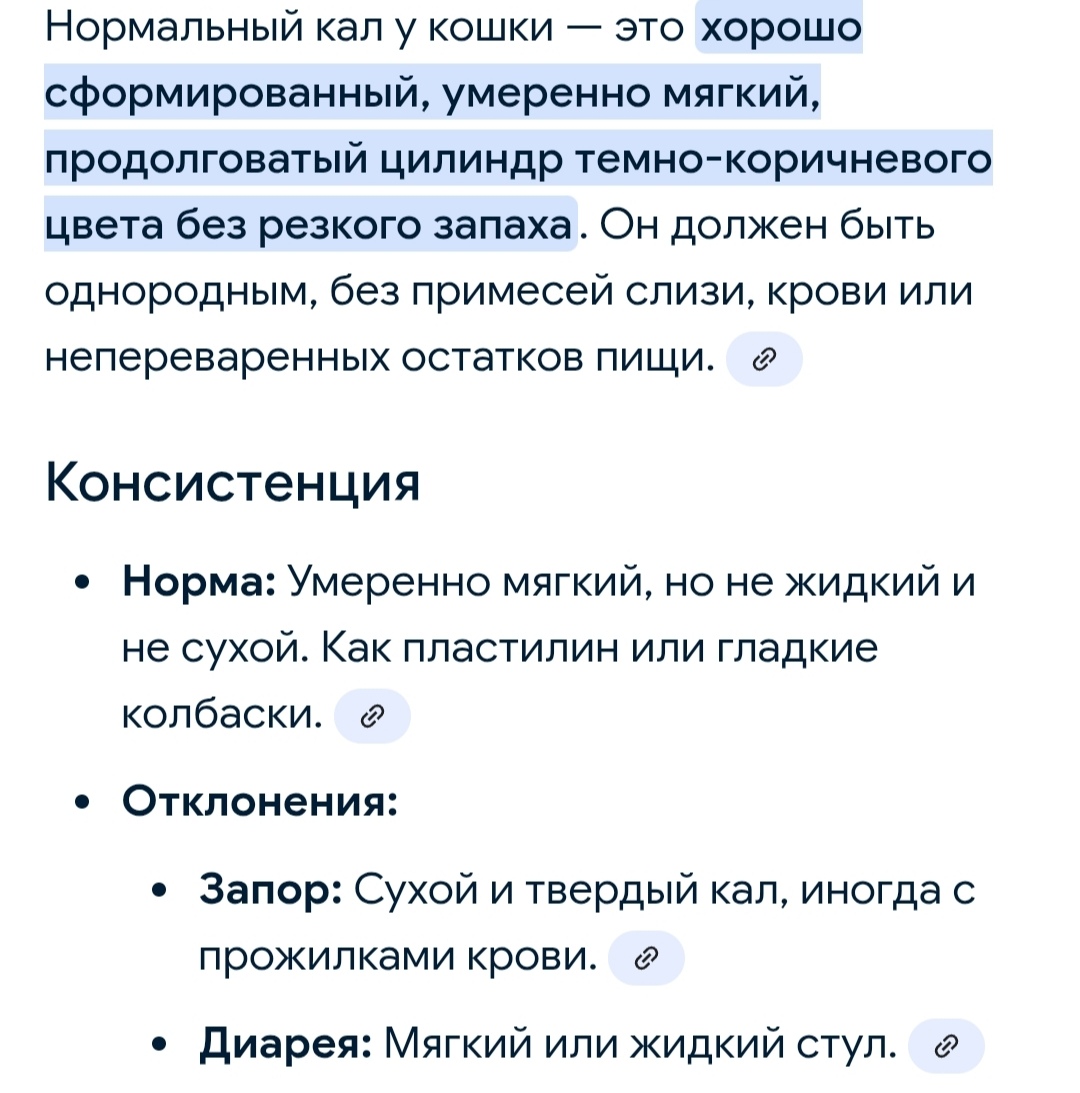 >>25394528 > твёрденькие как камешки добавь кошке в рацион клетчатки, это нездоровый стул, который может привести к заболеваниям кишечника и ануса но придется решетку мыть чаще