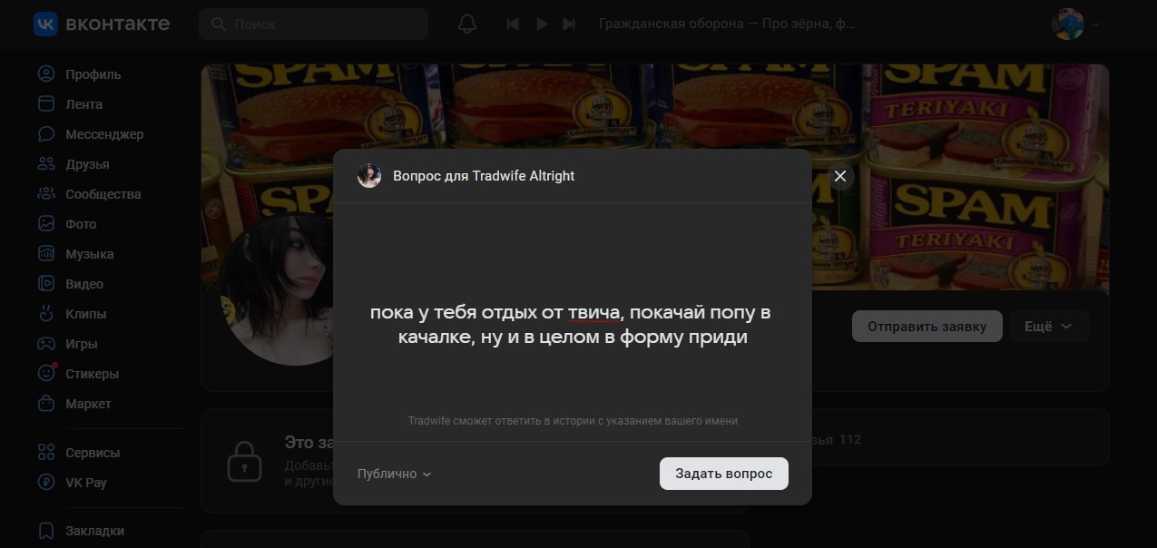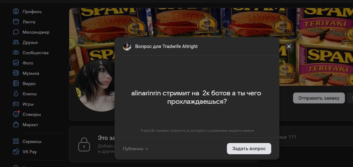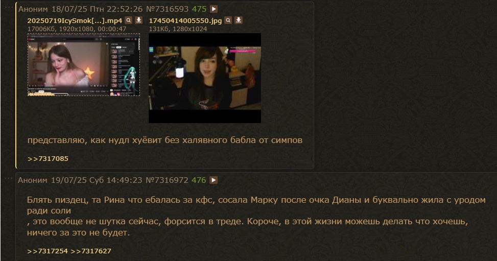 Целый год попукивать на стримах через не хочу, ради денях и откровенно пиздеть нонстоп тупорылым симпам. Не каждая пизда на такое способна...А тут еще ебанутая на всю голову шлюшка, которая ебётся с цыганом, а в вк корчит из себя традвайф, просто комедия нахуй