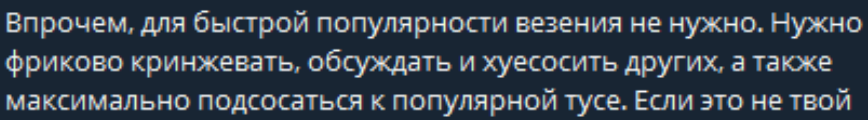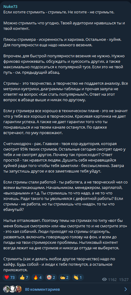 >>25406462 Кор-аудитория кста это обычно шизы с официальной пенсией которые 24/7 сидят и пишут у тебя хуйню, притом такую, что просто хочется их назуй забанить пермачом и забыть. Даже когда я стримл в 17-м году на 6 человек у меня был такой ебанат.