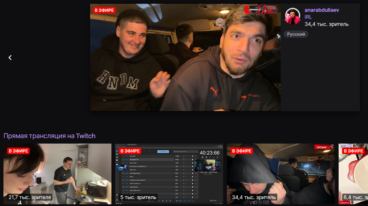 >>25408764 Есть такие товарищи как игорь гхк, как еще какой то толстый хуй из старой пати влг, которые всю дорогу стримят с ботами и мертвым чатом, но у них всегда есть рекламы, баннеры, какие то ивенты и прочее. Естественно они из агентства