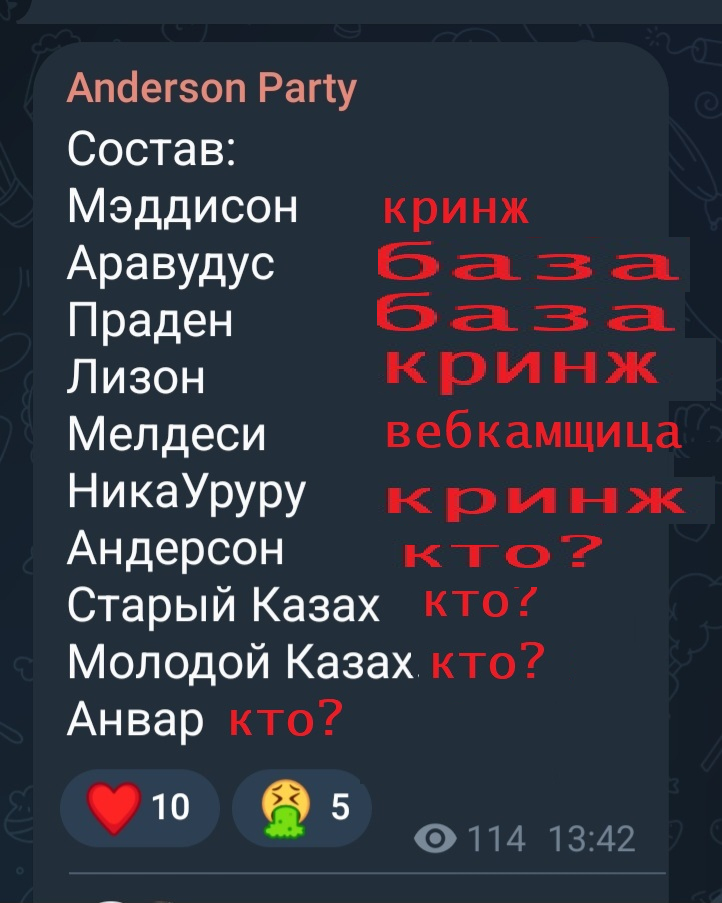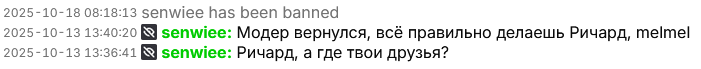 >>25412329 что связывает всех эти людей? они появляются у кого-то в чате и он их банит? как модеры пидрилтикуса шелестят все чаты и банят неугодных на канале пидора?