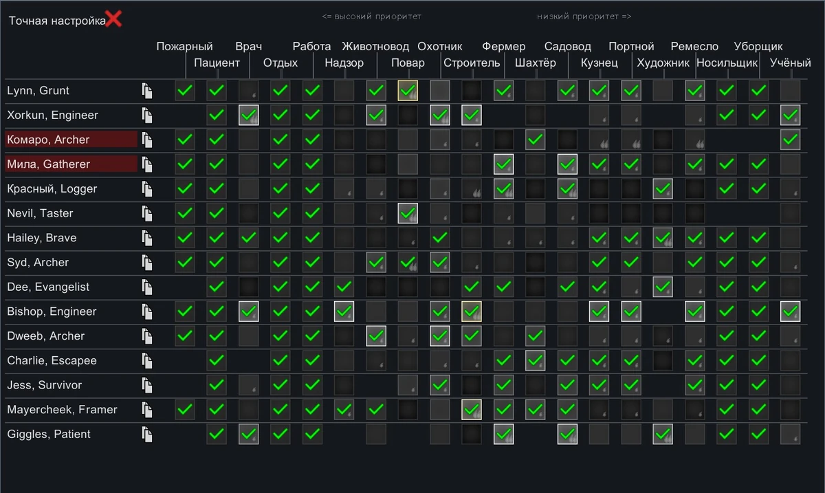 Настройки X