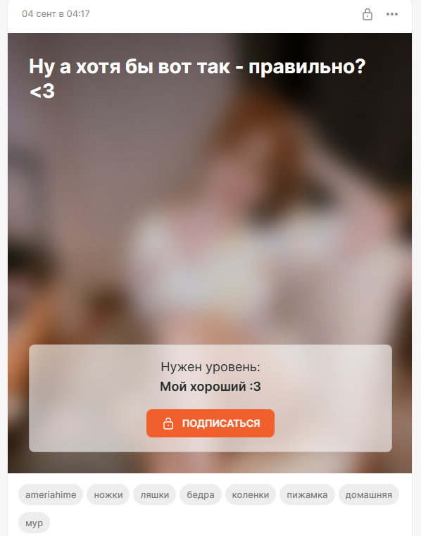 это отлично видно было по активу под постами, когда я еще подписывался, посты, которые я так понимаю нравятся ей самой набирали меньше 10 реакций обычно, и логично чем пошлее фотки тем больше реактов