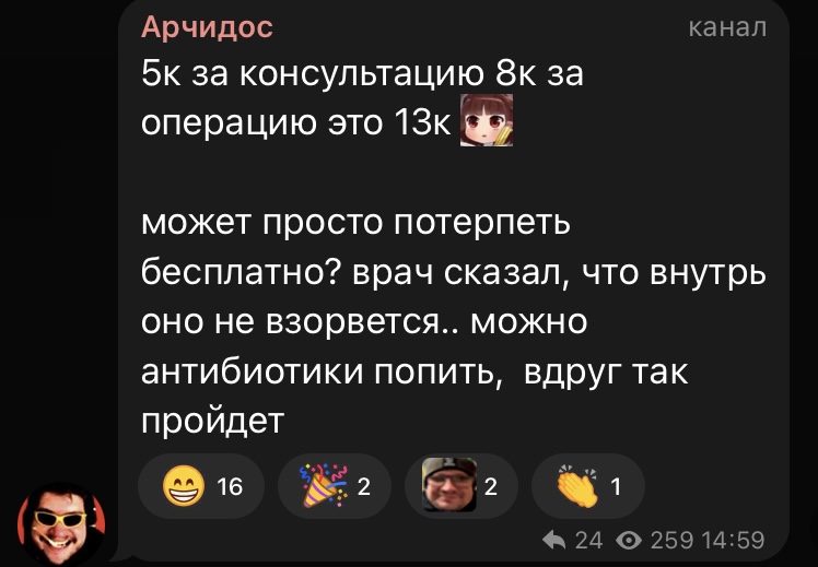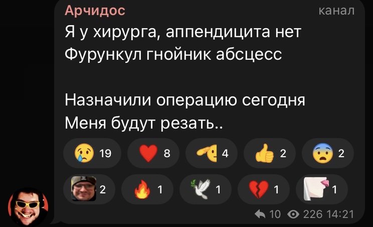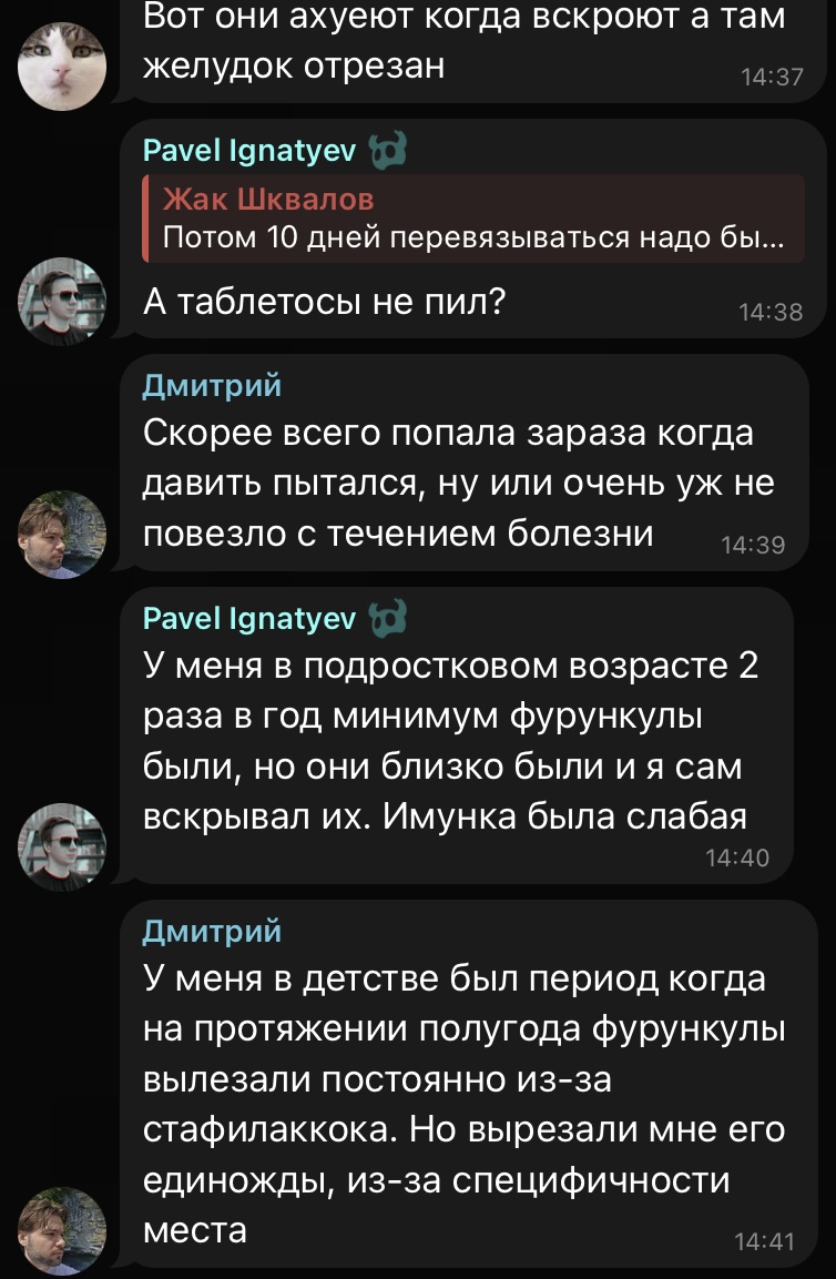 АХАХАХАХ как же таджа греют, это обычный гнойник как прыщ только большой, можно было просто 2-3 помазать мазью вишневского и он сам бы вышел, а этот идиот попытался его выдавить и получил нарыв, но и в таком случае нужно было идти в обычную поликлинику с острой болью можно без очереди и документов и ему бы дежурный хирург бесплатно вырезал это за 3 минуты, а этого идиота прогрели на 5к за консультацию и 8к за разрез АХАХАХАХАХАХ
