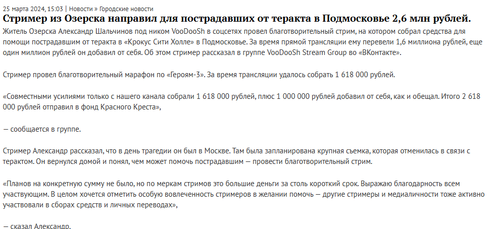 >>25416262 там заработок 10+ лямов пчел, ну это так, на ПОДУМАТЬ но ты можешь не верить конечно, а еще жопич за одну поездку в вегас все пробухал, за 2 недели все потратил и другие веселые истории стримеров