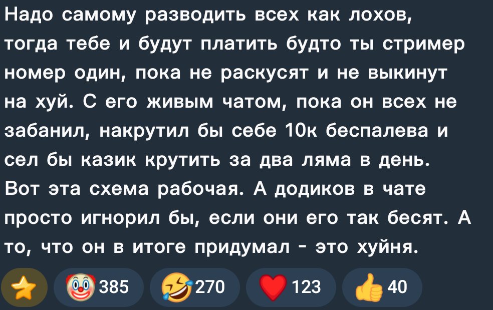 Грузинская чурка Чмодье продолжает толкать криминальную психологию в массы о том что надо всех кидать и всех наёбывать https://t.me/maddysontg/4960