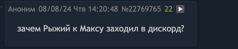 >>25435231 про фортнайтеров фул хуйня не верь в это, уже года 4 если не больше вкидывают ни одного нет кто может что-то сказать, шипа со скоем не было, он ей просто нравился, она все время сидела у него на стримах, не просто зайти и выйти, а все время, постоянно рейды кидала, у нее в в стате за итоги года он был первый это не сложно найти могу кинуть если надо, долго выпрашивала випку, он ей не давал, она ему на др 50 к закинула и он ей дал в итоге, тут писали что она убуханная заходила и писала ему это было вроде после дня рождения братишкина сюда кидали скрины по датам тоже можно найти, она единственная девочка играла с ними в пачке со строго скаем эвелоном десаут еще вроде был в 4-5 утра и гаечка жаловалась на это все видосы есть на ютубе