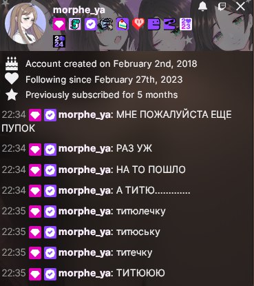 Сейчас три лахты обсуждают какую-то хуйню с кем ебаласт натрашка гайка с мевсу или нет морфи любила жида или нет идите отдохните еще бы пятилетней давности обсудили события из актуально только очередной байт про мевсика от его ебанутого фаната