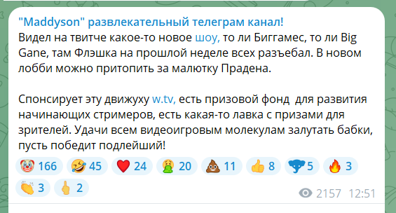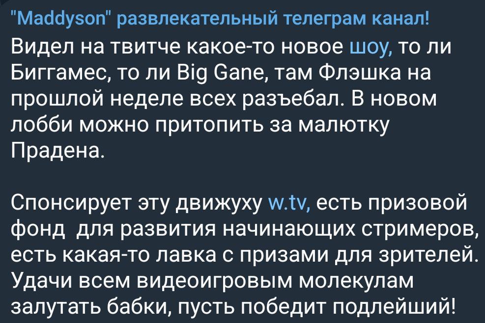 Решил посмотреть че там у прадена, праден чета рассказывает, а флексид начал к бабе из его тимы подкатывать, праден грубым голос такой ДАВАЙТЕ ПО ДЕЛУ БЛЯ