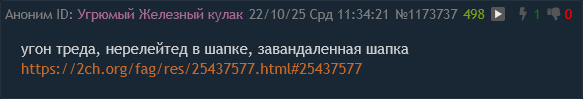 угон треда, нерелейтед в шапке, завандаленная шапка