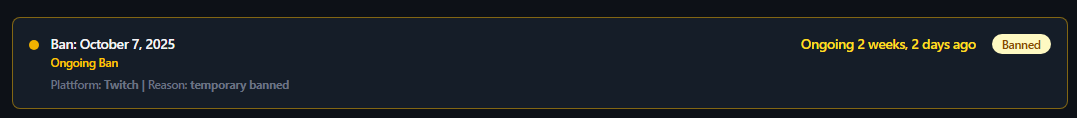 >>25449983 Сейчас кстати можешь попробовать. Напиши слово пидор в чате у любого стримера с 200 зрителями. Не пиши об этом на дваче. Просто проверишь забанят ли тебя или нет, если нет то действитель Арчи из за треда забанили