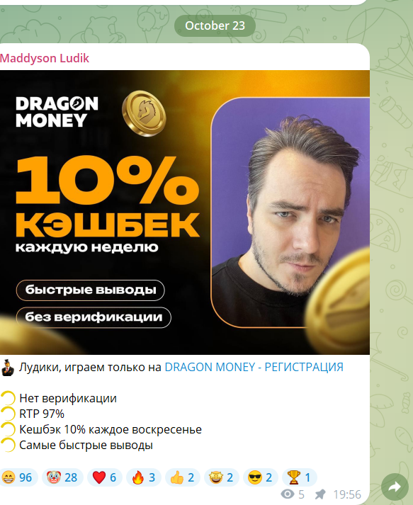 После топовых казиков, которые рекламятся на F1 и футбике, к мутным Dragon Money... Как же чмодье опустилось, скоро наркоту пиарить будет, а чмодьедауны это схавают за обе щеки
