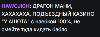 >>25445536 Во-первых, играть будет на рубли, которые ему кто-то будет выводить через крипту, эсли не на фиксу офк, балик будет 300-500к, вагер х3 или х4. По первому стриму сразу будет ясно фантики + дубай или нет, зная лудожопича, он скорее всего отказался от фиксы, НО, может быть, в этот раз будет брать процент от проёба зрилов, о чем много раз жалел в последствии.