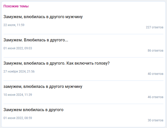 Привет . Не знаю зачем пишу, но некому мне душу излить . Жила я себе спокойно много много лет , 15 лет семейной, правильной жизнью . Правильной в том плане не сиотрела не на лкво, не на право. Жила и жила , ничего особенного, вышла замуж потому, что типо надо , родителям угодила с выбором, все счастливы, кроме меня. Родила деток , и забыла про себя. Все им, а я так с краю. Привыкла к мужу, он хороший, просто мы не понимаем друг друга, не было эмоциональной близости никогда , будто мы с разных планет, но я научилась аодстраиваться, так как устала спорить, ругаться , вечно он недовольный, человек, который прие$ется к столбу, если захочет. Но дети, и меня это всегда останавливало. И тут совсем негаданно, я встретила мужчину, просто в очередной раз, пошла в магазин . Я видела его много много раз до этого, недалеко живем. И понеслось… после он признался, что уже год наблюдает за мной, я была в шоке , насколько он помнит разные ситуации со мной. Признался в любви , и не буду вдаваться в подробности, но уже на протяжении долгого времени я тайно с ним встречаюсь. Я не могу отказаться, хотя понимаю, что все что я делаю, ужасно. Он меня не отпускает, зовет замуж , и дня не прошло , чтобы я не думала о нем, а про секс, я вообще молчу. Но я конечно боюсь . Боюсь всего, перемен, реакции детей, общества. Вообщем , по тихоньку схожу с ума , и совесть замучала. И муж видит, что я изменилась . А я действительно изменилась , и внешне, и внутренне. Просто в первый раз в жизни мне хорошо , я хочу прижаться , и не отпускать , а муж все время мне говорил : « ты такая холодная, никогда не обнимаешь, от тебя ноль эмоций « . Что делать ??