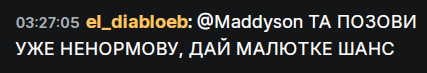 >>25443022 Что есть, то есть. Мэд Ненормову разъебёт на стриме. Терпеть выебоны её не станет. Поэтому никакого общения в прямом эфире до сих пор и не было. Был стрим с Гилтикус, где Жопич прошёлся по всем гомосексуальных шуткам в её адрес. Но всё равно, я бы посмотрел, кто кого перекричит.