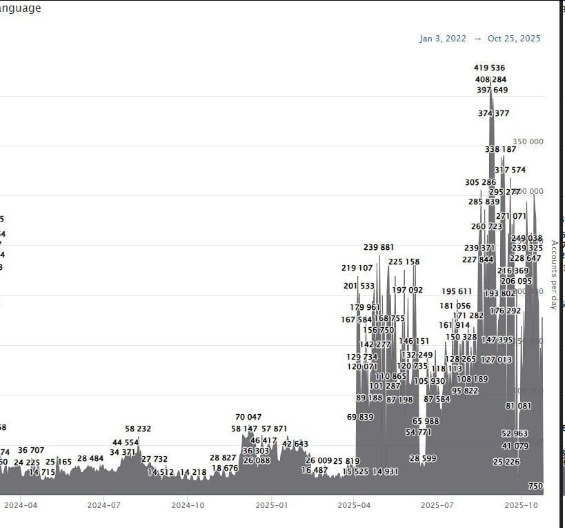 По словам Гвина, он выборочно проверил часть этих профилей и обнаружил, что многие из них уже находятся в бане. Он также отметил, что всплеск регистрации не связан с притоком аудитории из YouTube или TikTok, поскольку даты не совпадают.