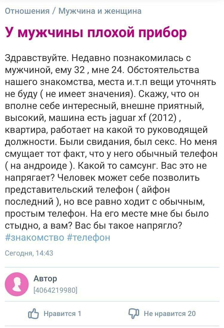 >>25460961 > «У мужчины плохой прибор» — девушки на женских форумах активно обсуждают, что не смогли бы встречаться с мужчиной без айфона 😲