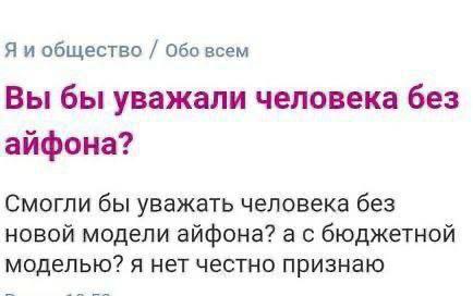 > Другие девушки на форуме также отметили, что не смогли бы уважать человека без айфона