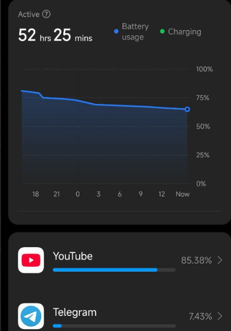 спустя двое суток общения в тг и просмотра ютуба и то был не фул заряд пришла обнова прошивки пришлось перезагружаться, там бы уже несколько суток было без зарядки