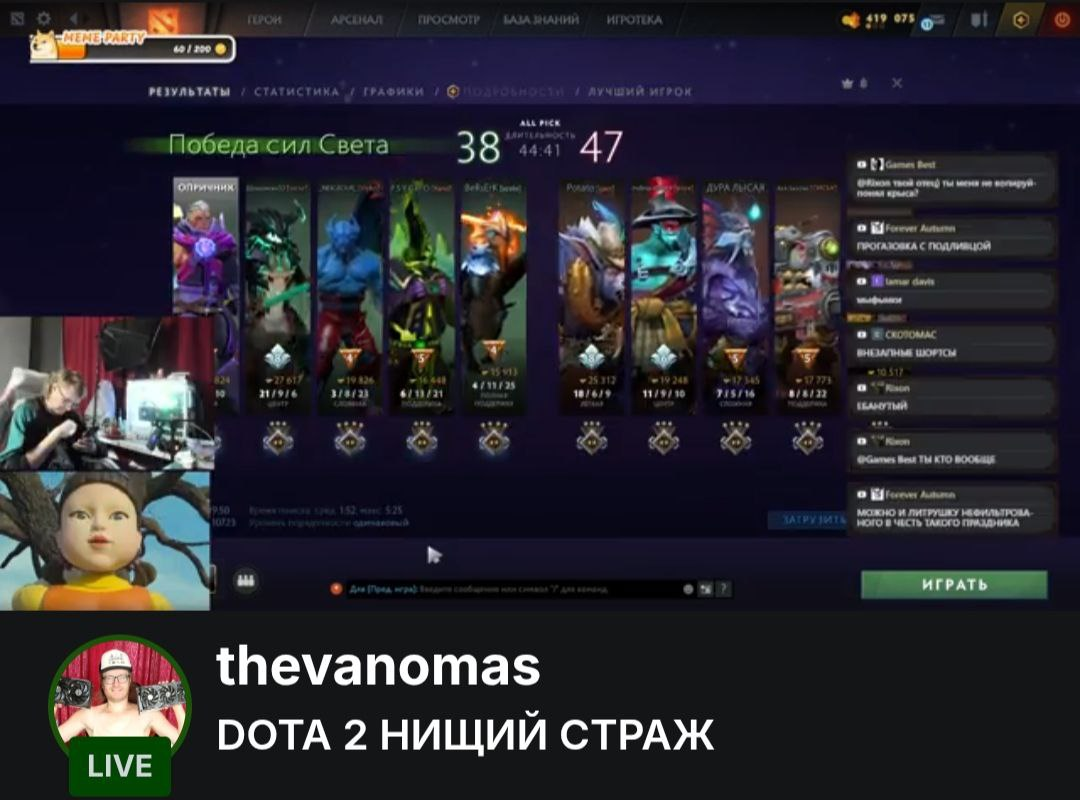 походу проект 'ваномас' ВСЕ.кроме терпильных стримов с дотой, пожиранием шавермы бомж больше ничего не родит.медийный труп.без пиара андера в тг он давно бы сдох уже