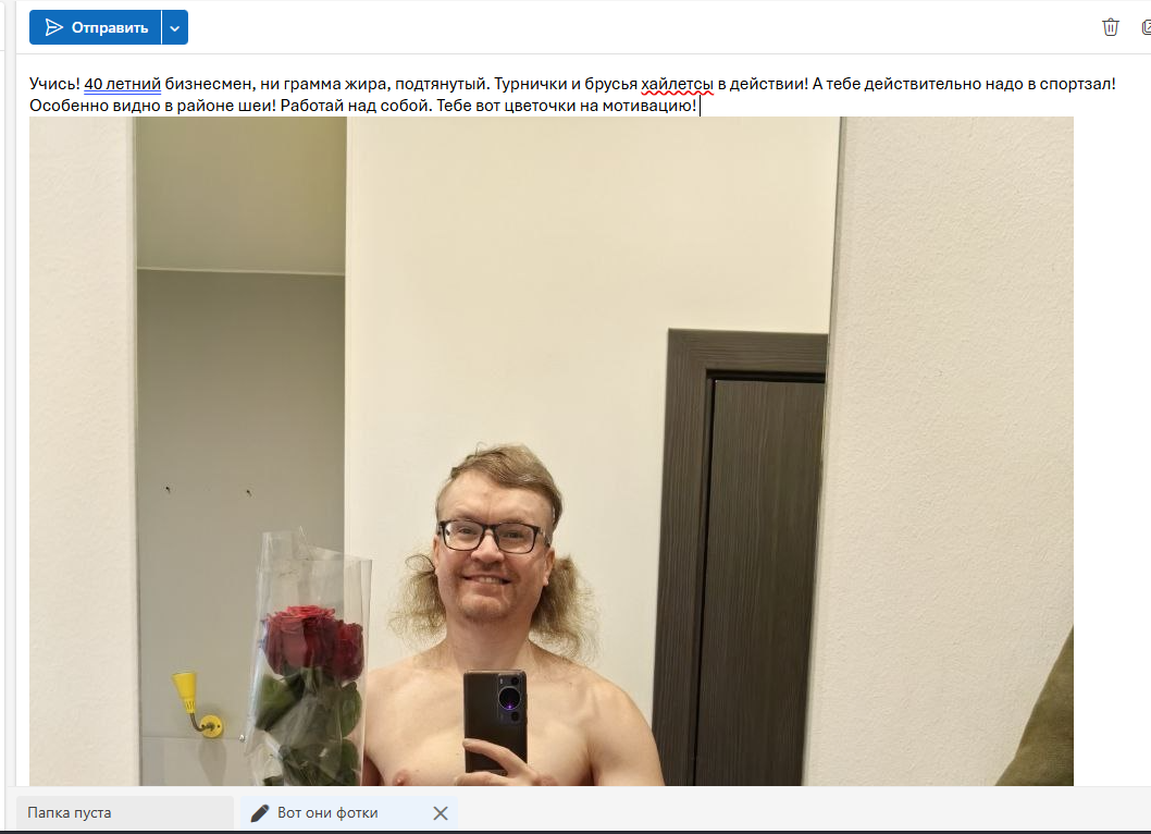 Одна блогерша порвалась от моего пожелания ей ходить в спортзал, и начала предлагать скинуть ей на почту мою фотку типа что как так я ее назвал почти скуфыней. Может скинуть ей масленка в розами?