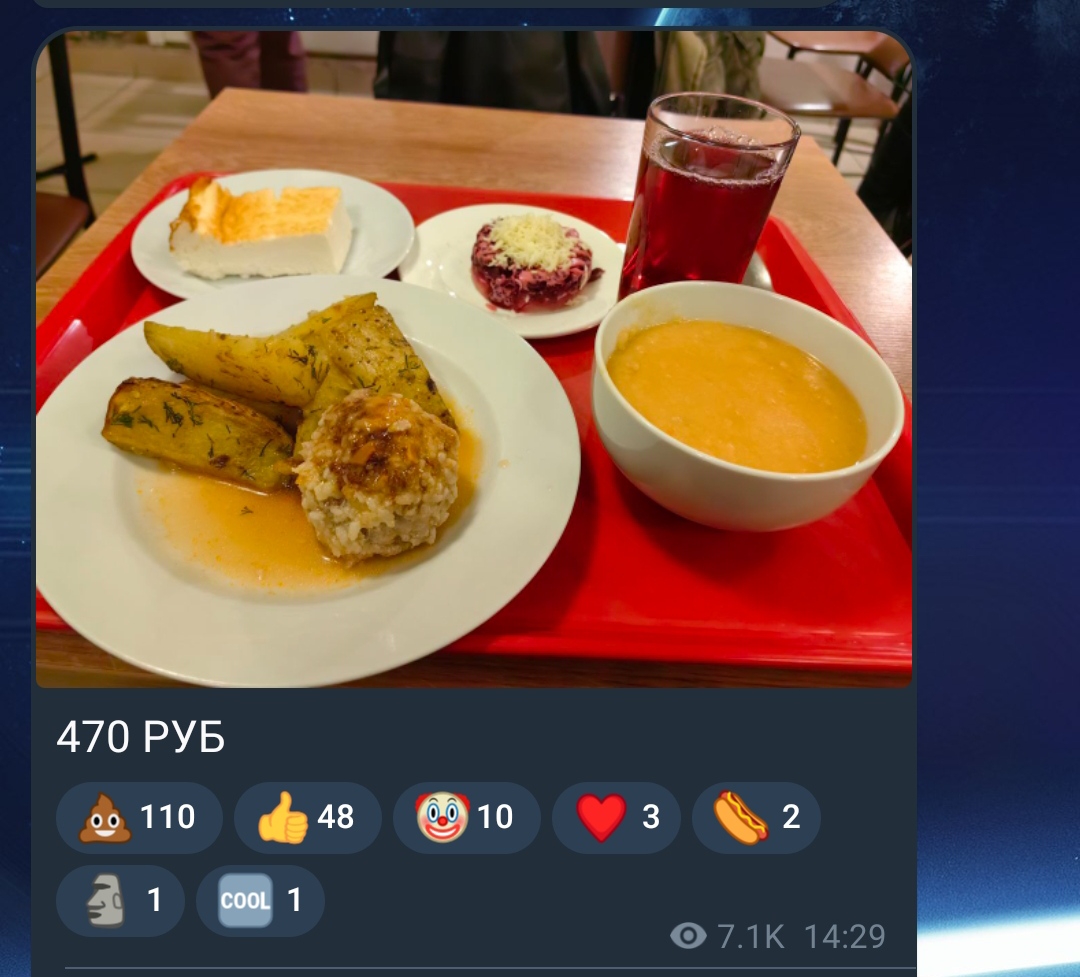 >>25448267 470 руб 1 приём пищи, надо таких минимум 2 в день, не считая завтрака/кофе/чая/перекусов, итого 40к в месяц минимум самый нищий вариант, ниже некуда