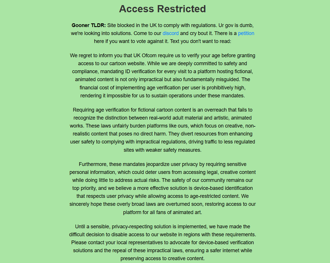 Ещё там есть "online safety act", порнуху и любой 18+ контента нельзя смотреть без подтверждения возраста по паспорту. Во Франции и Гермахе что-то подобное тоже есть..