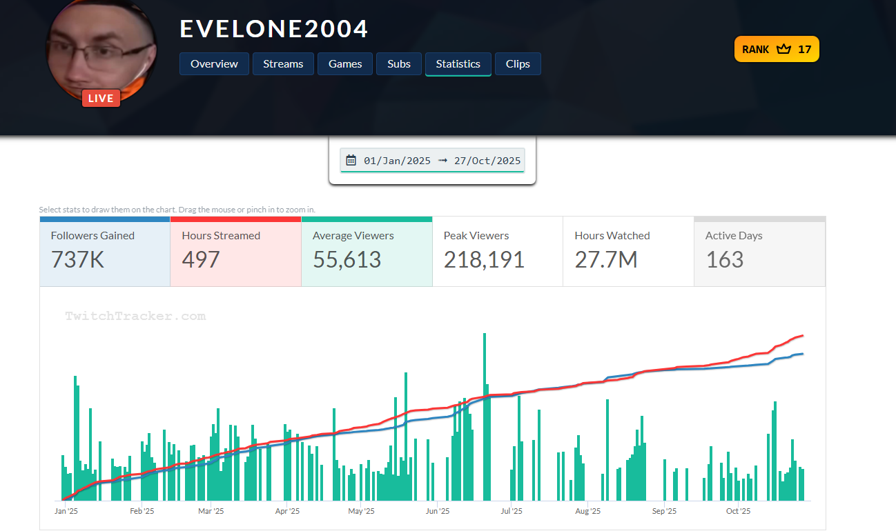 Кстати самое смешное что зрители Глебаса Эвелона даже не воспринимают как конкурента какого-то,вижу эдиты в Тик токе типо "Слей Кинг 2025?" Братишкин,Пятёрка,Денжер а Эвелона даже нет