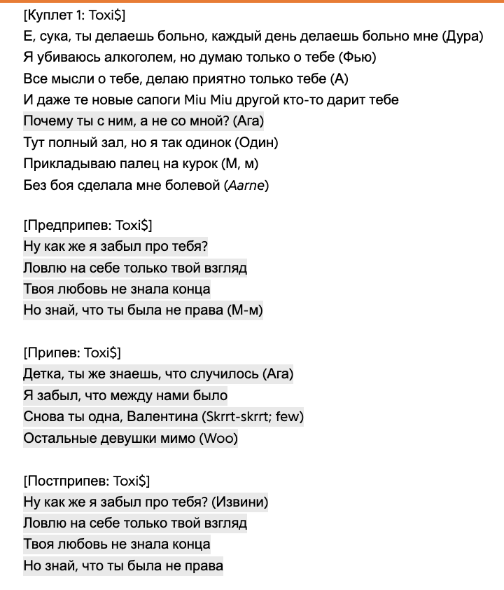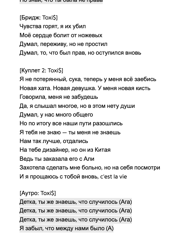 Я думаю натаха не знала, что строчки про нее, но когда услышала, что токсис трахал в сортире, то сразу же флешбекнуло.