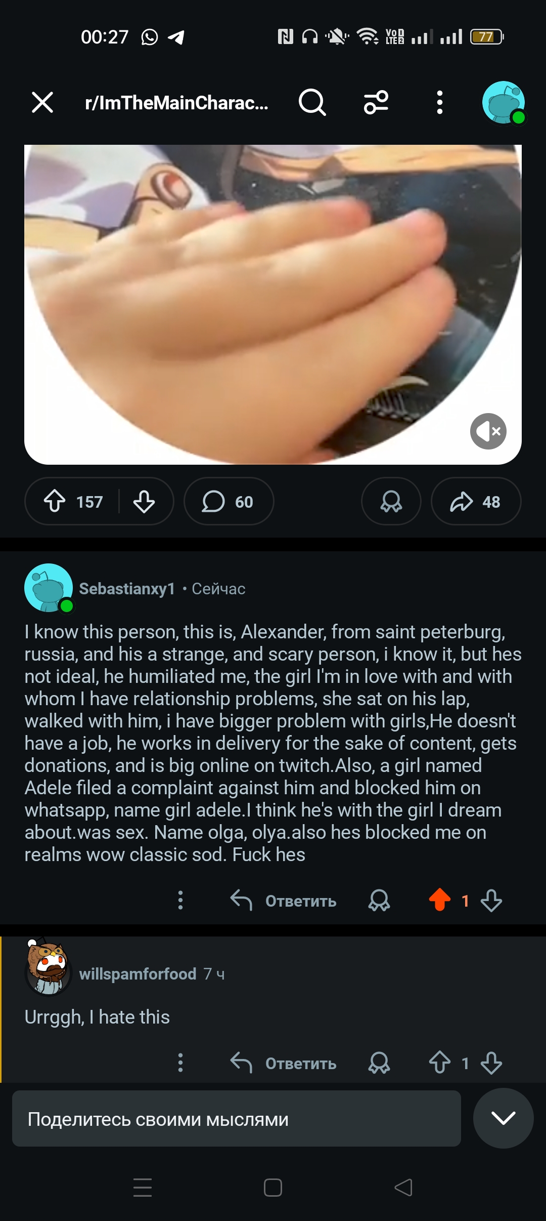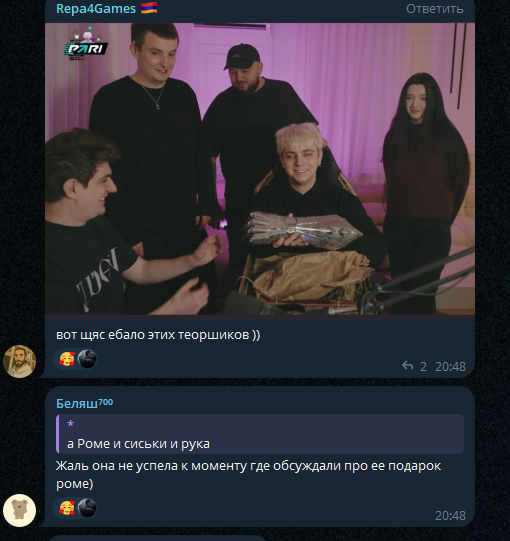 Если выйдет конфликт аудитория фриков загнобит же девку которая итак на 300 онлайна стримит.Она вчера уже у себя в чате ныла что ей плохие коменты в чате пишут