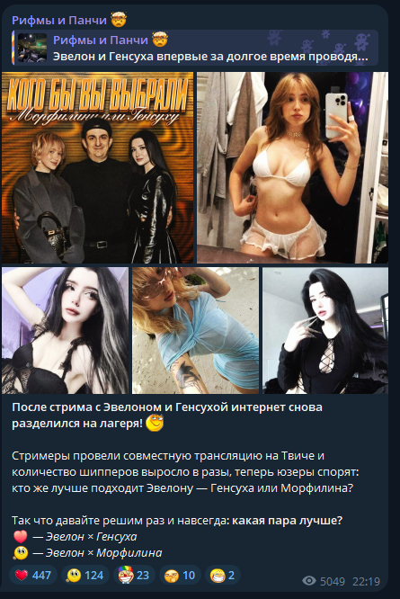 самое че хуевое, что наташка все еще страдает по токсису. варик что она его задела ради хайпа/онлайна отпадает сам по себе, когда видишь онлайн ее с эвелоном