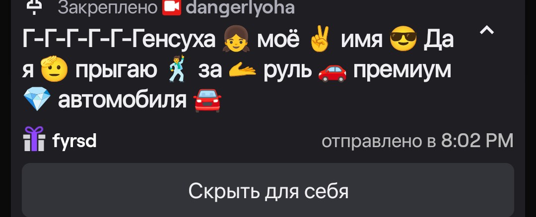 >>25567492 А че тут понимать? Это как минимум странно когда у тебя в Донатах все скитается про Токсиса, слово Токсис в чате моментально удаляется, при этом уже второй или третий раз сама чёт про него пишет