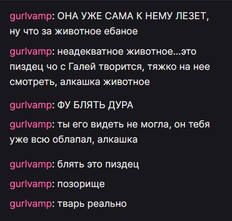 Но ты конченый. Пока она не скажет "я пропогондирую лгбт" - это не считается пока чувак с ножом не скажет - смотрите, я режу человека - это не считается, потому что он же ни слова не сказал, молча резал - значит не считается. Вот смотрю на тебя и понимаю откуда у стримерок такие донаты - потому что такие тупые как ты, с опухшими от их ссанья мозгами, кидаешь им деньги и дефаешь везде как маленький сучонок,которых у нее 600 человек