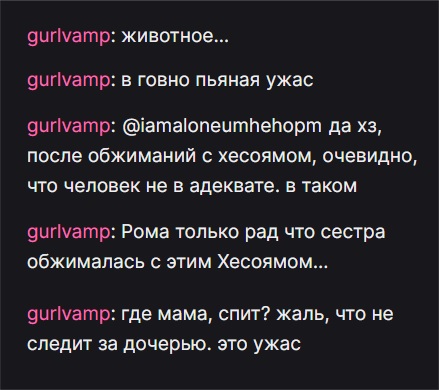 >>25550221 > взяли в оборот какие-то "продюсеры" типа Пидарка Псины, который ебал Валю за дозу мяу несколько месяцев как сутенёр, а она в этом время писала в телегу что "кажется влюбилась" и "кажется всё серьёзно". а потом её просто вышвырнули на мороз в один день, когда наигрались с её жопой