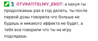 я хуею с того что она палит свою тупую консумерскую логику как обкололась говном за 10к сразу по приезду и почему то болеет, что точно будет делать подтяжки несмотря на мнение мужа, что сумка луи витон вписывается в образ нетакуси, и находятся долбоебы кто пишет только - уля бедняшка не болей, чмоки - чмоки где выращивают таких одноклеточных даунов, пиздец