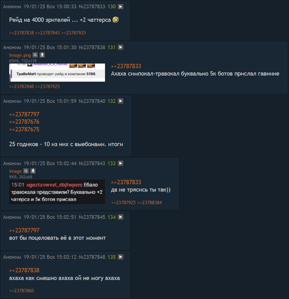 >>25531951 → > почему он после этого так хотел с Аморанс познакомится,так сказать вкусить рыжести Амурант наступила на него прошлой осенью(24-й год) Рыжопич появилась 9 мая(25-й год) ровно ночью Сама калнорма покрасилась в рыжий уже после хайпа по рыжопич, о чем сама признавалась. И покрасок было 2. Этой осенью Илья в последний момент пиздел опять, что якобы поедет на твичкон к... УЗБЕКУ амурант, а не к ней, а все микроколлабы с амурант уже настолько поросли мхом, что пиздец. Так что я хз где и как ты это высрал и прилепил всё к калнорме, когда по факту не было такого и ты по таймингам ваще не попал нихуя, промах где-то в год