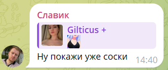 >>25570130 О, ЛаскаЛаска, помню в году 23, пока очередной канал в телеге не заблочили за торговлю порнухой, то постоянно лились ушаты говна в сторону Гилти