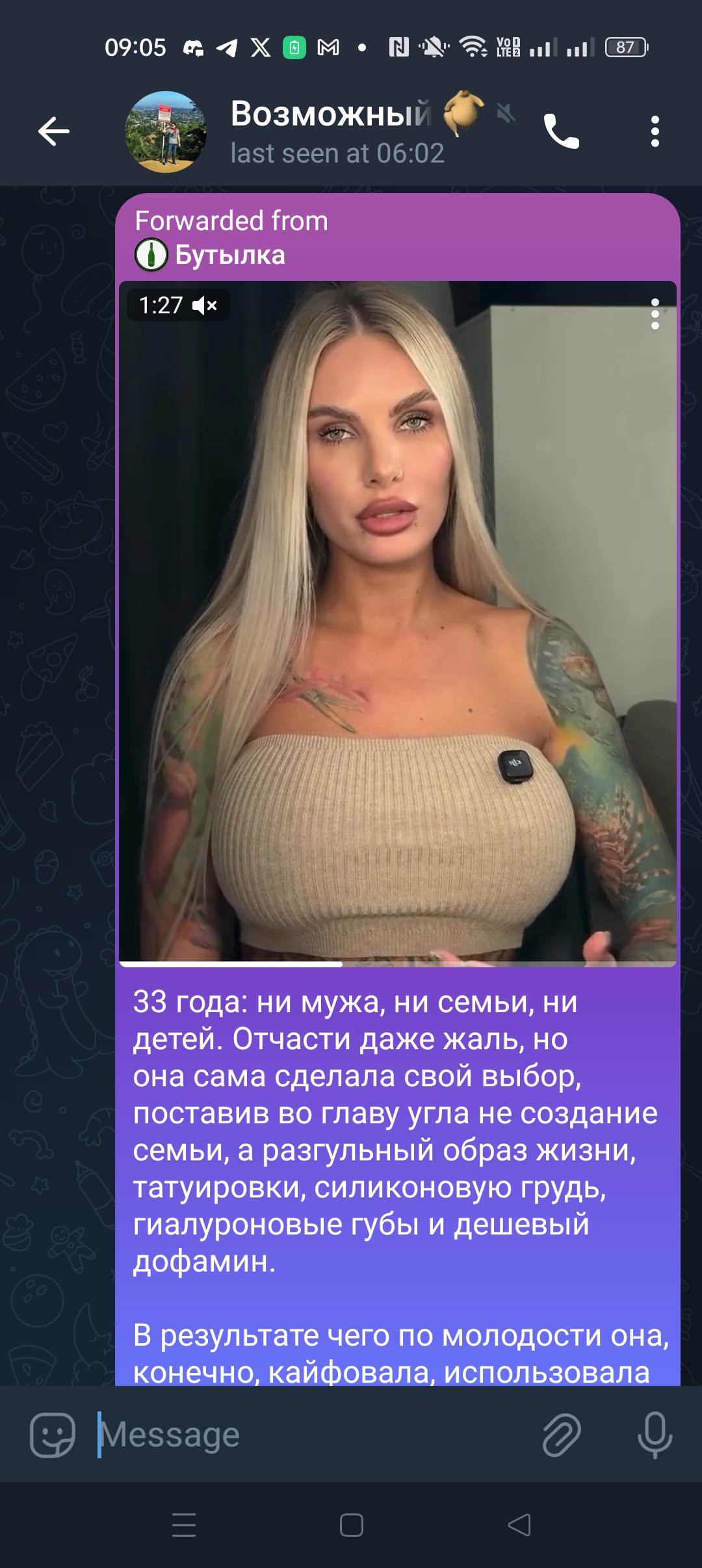 Попался мне один ролик от пизды, с паблика поздняка. Красивая девушка ноет о том что, в 33 она ебалась на права и на лево, не искала мужика, сидела на патриках, и сейчас когда она никому не нужна сидит у разбитого корыта, и продает хату, потому что не может в ней жить. И у нее нет ни детей, ничего. Кидаю данный видос, возможному теневому троли, он говорит что данный видос никого не напоминает