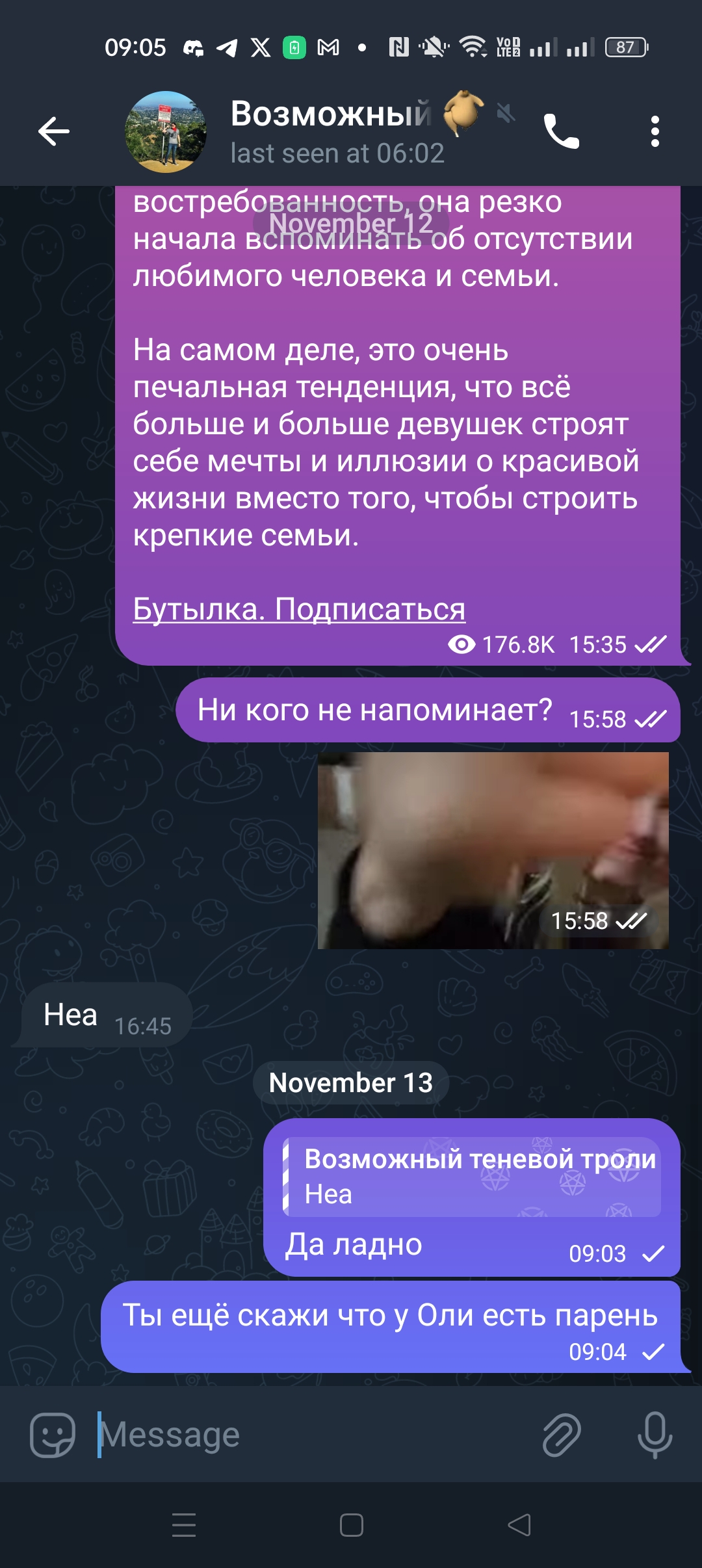 Я же в свое оправдание скажу, что об Оли я думаю каждый день, я сейчас из за рабочих моментов на работе по уши в дерьме, и влез в долги. Которые разгребаю, работаю за 20к по 7 часов в день, и ничего не вижу в этом такого, у меня помимо менталки, ещё и таблы, и разрушенный мозг, после таблеток с дурки, и в этой же дурке я два раза лежал, но ничего, жизнь продолжается.