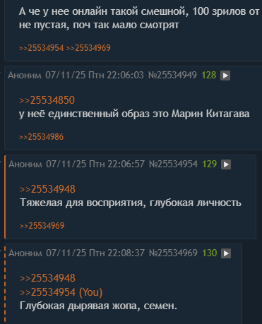 >>25542461 признаюсь честно, меня не карежит с тебя, лишь от скуки порой бывает забавно тебя реплайнуть чтоб тред двигался, но должен признать, что меня впечатляет твоя вовлеченность в вопрос, это вызывает немного уважения, что следишь за онлайном, за тг каналом, занюхиваешь всё, походу ты первый и единственный продуктивный хейтерок
